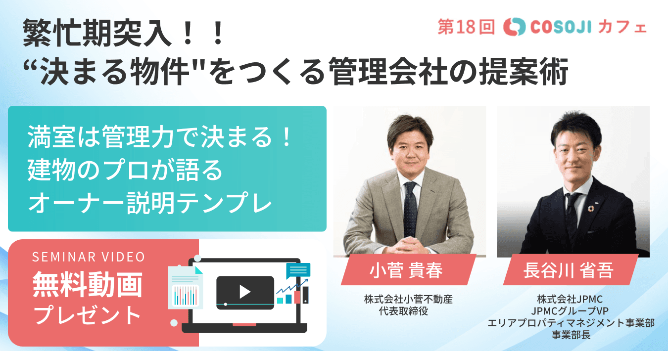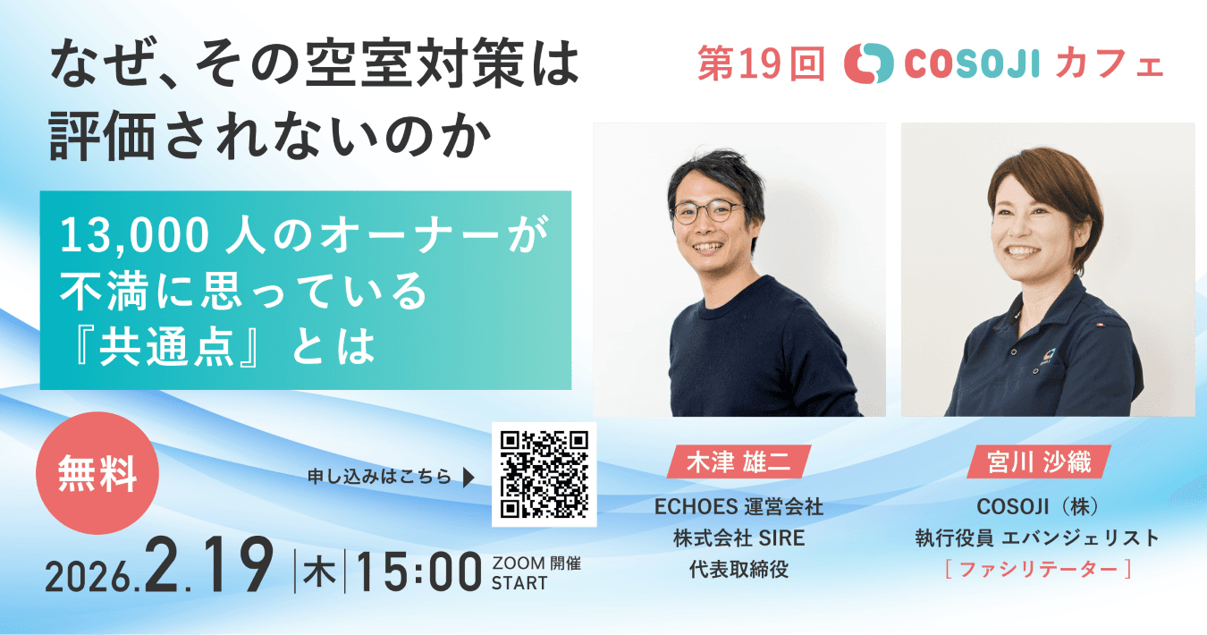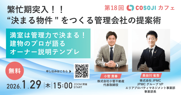 COSOJIは、AIソリューションサービスをはじめAI管理ツールの提供、全国3万名を超える作業員ネットワークを活かした施設メンテナンスや駆付けまで展開する“不動産管理の総合ソリューションカンパニー”です。
