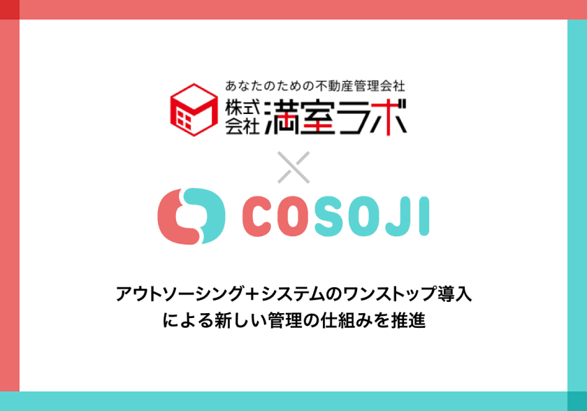 Rsmile株式会社(本社:東京都千代田区、代表取締役:富治林 希宇)の提供する『COSOJI』は、現場の声を活かした不動産管理の「見える化」に向けて力を注いでいる株式会社満室ラボ(本社:愛知県一宮市、代表取締役:傍島 啓介)に導入いたしました。