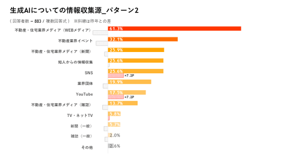 不動産DX、生成AIについての情報収集方法はSNS、YouTubeが昨年から大きく増加