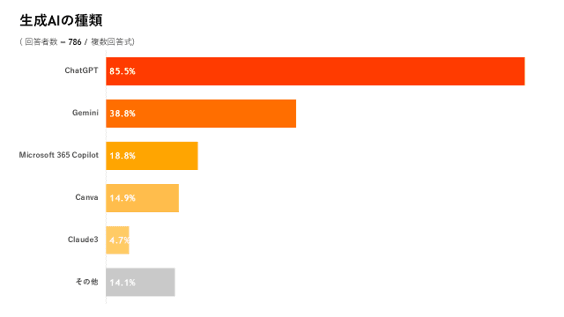 使っている生成AIはChatGPTが85.5%、Geminiは昨年の4倍に増加。