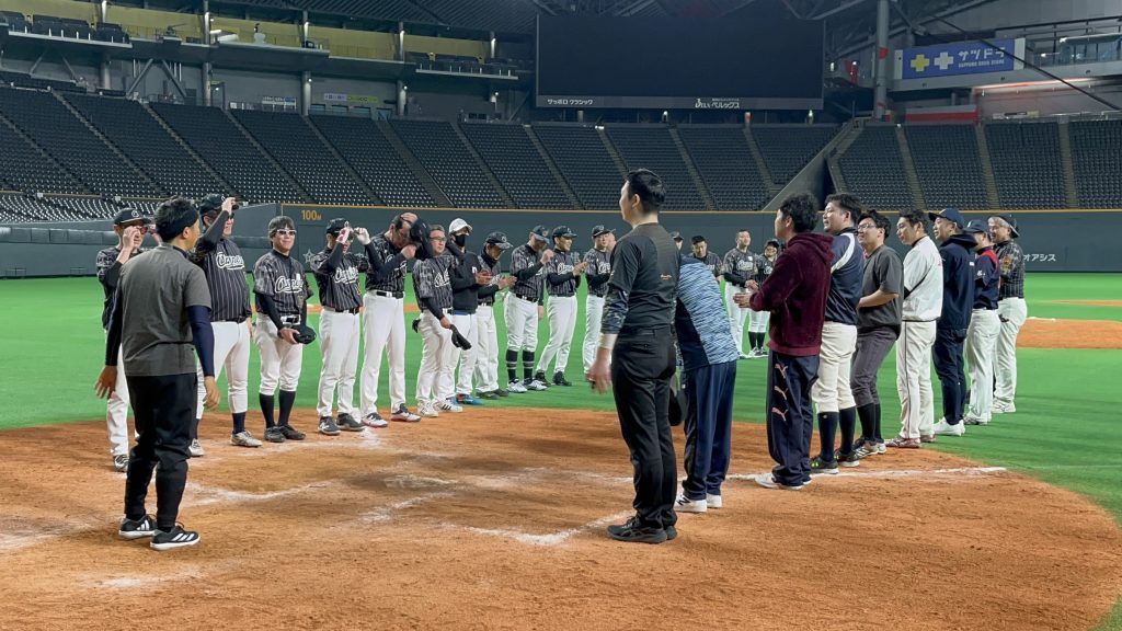 北海道大家塾の原田哲也 塾長による始球式を皮切りに、2チームによる全2試合を実施。プレー後は、札幌市内の懇親会会場にて交流を深め、業界全体の連帯感をさらに高めることができました。