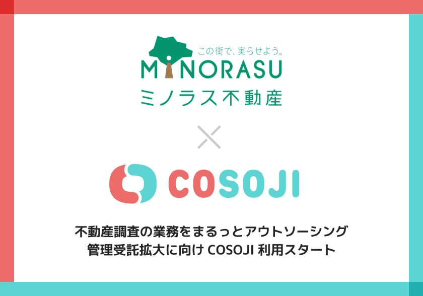 ミノラス不動産様(本社:東京都大田区西蒲田7-36-7、代表取締役:石川 英嗣)がCOSOJI株式会社(本社:東京都千代田区、代表取締役:富治林 希宇)の提供する『不動産管理サービス:COSOJI』の利用を開始いたしました。