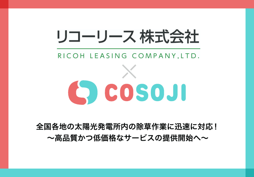 Rsmile株式会社(本社:東京都千代田区、代表取締役:富治林 希宇)の提供する『COSOJI』は、発電事業者としての目線を活かしながら、発電事業者を支援するサービスの充実と再生可能エネルギーの主力電源化に貢献する、リコーリース株式会社(本社:東京都千代田区、代表取締役社長執行役員 中村 徳晴)と連携いたしました。