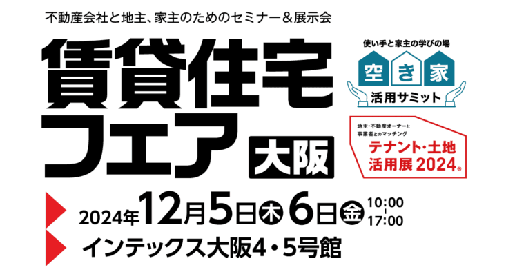 2024年12月5日(木)~6日(金)にインテックス大阪で開催される、全国賃貸住宅新聞社主催『賃貸住宅フェア2024』にCOSOJIが出展します!