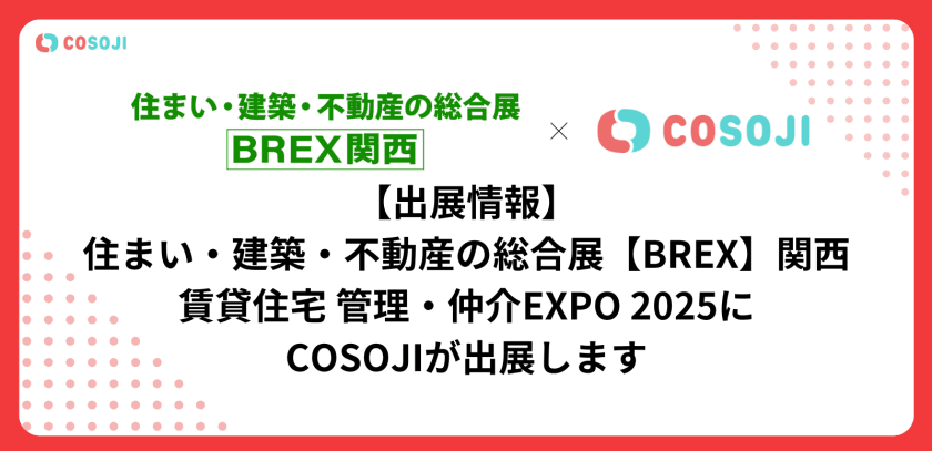 【出展情報】住まい・建築・不動産の総合展【BREX】関西 賃貸住宅 管理・仲介EXPO 2025にCOSOJIが出展します